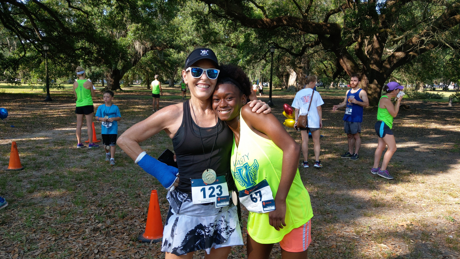 This special event would not have been possible if not for event chairs Susan Opelka & Julie Slick, as well as the generous support of local artists, businesses, and donors. Post-race food and concessions were donated by Louisiana Pizza Kitchen and Luzianne Iced Tea. Grace Pilates & Yoga offered post-race stretching and meditation. More support came from Louisiana Running & Walking Company, Higher Power, and Chuck George with New Orleans Running & Walking Systems. Handmade pottery medals and prizes were crafted and donated by local artisans.